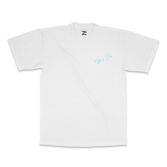 Soar 30pcs of Silver Catholic brand Logo with blue dove on white unisex heavyweight t-shirt