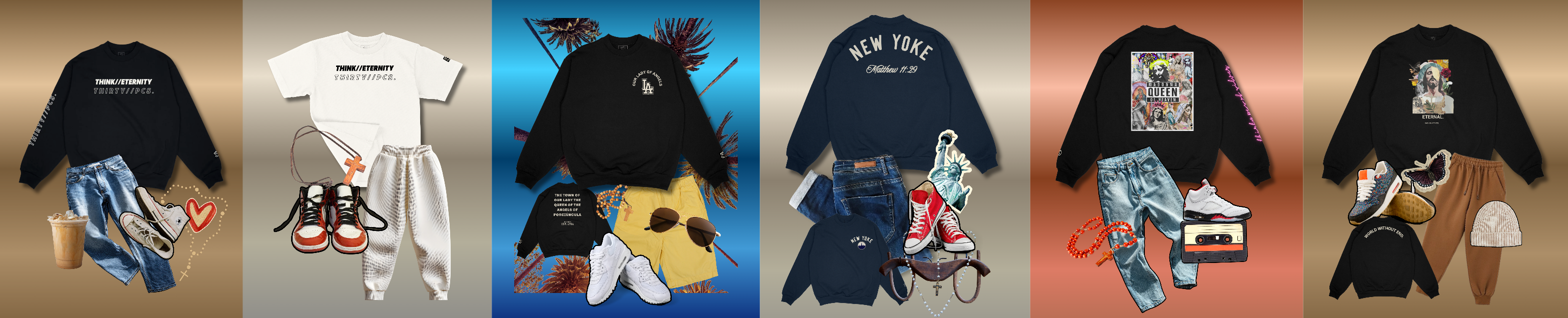 NEW Eternal- Heavyweight Crewneck | Divine Collage Collection | 30 Pieces of Silver Catholic Apparel Black